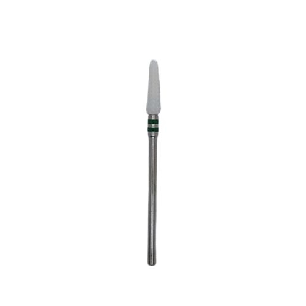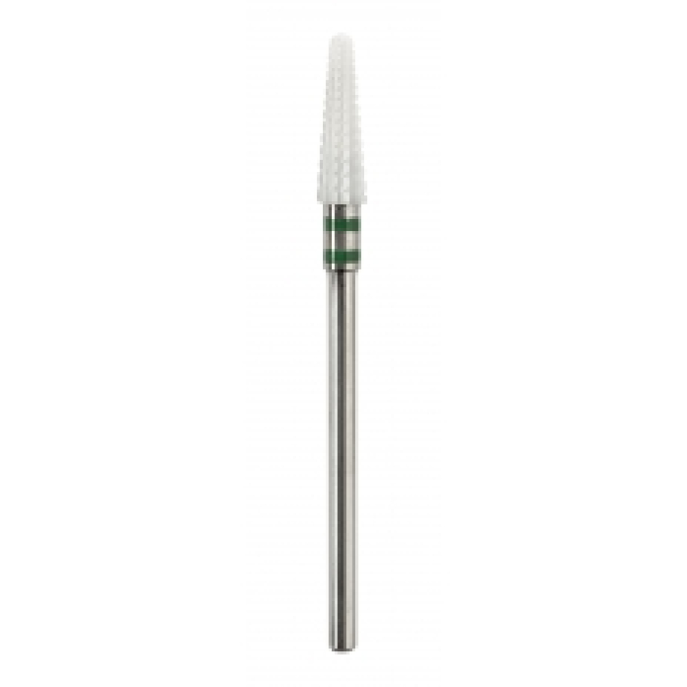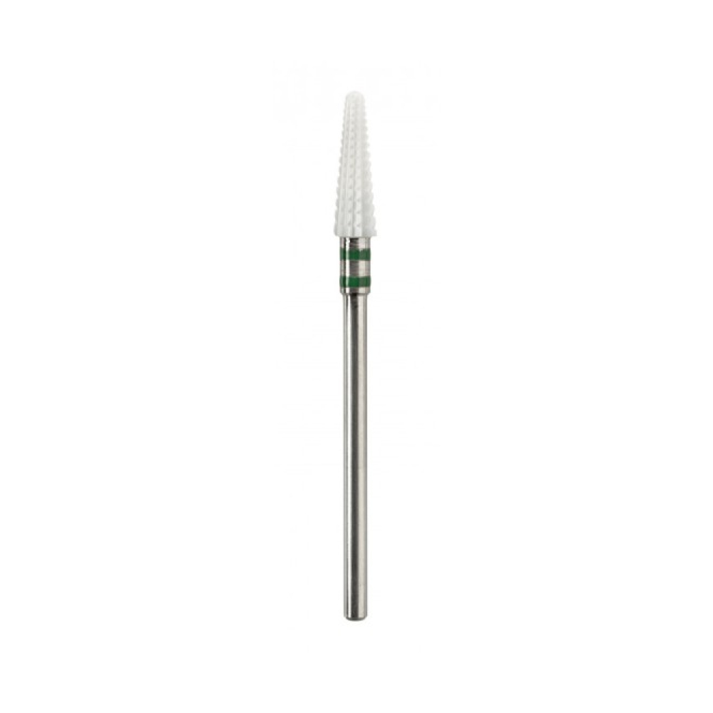La fraise conique céramique Edenta à double bague verte est conçue pour les travaux les plus exigeants en pédicurie et podologie. Sa denture droite très agressive permet de traiter efficacement les ongles très épais, déformés, les callosités importantes ainsi que les orthèses en résine.
