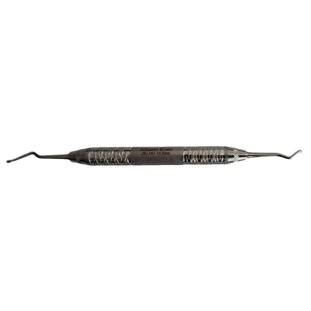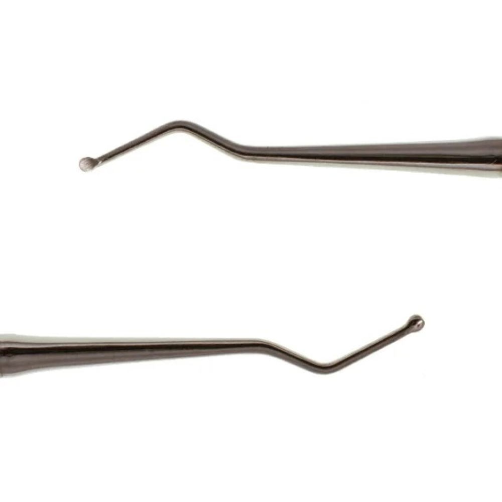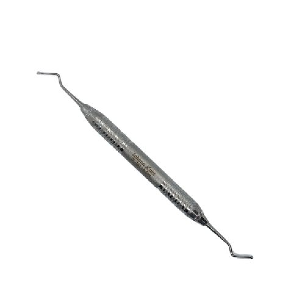 L’excavateur professionnel de Johann Kurtz est un instrument de précision fait main, conçu pour les soins de pédicure et de podologie. Il possède deux extrémités identiques en forme de boule de 1,8 mm de diamètre, idéales pour nettoyer les sillons unguéaux et retirer les débris sans blesser la peau.