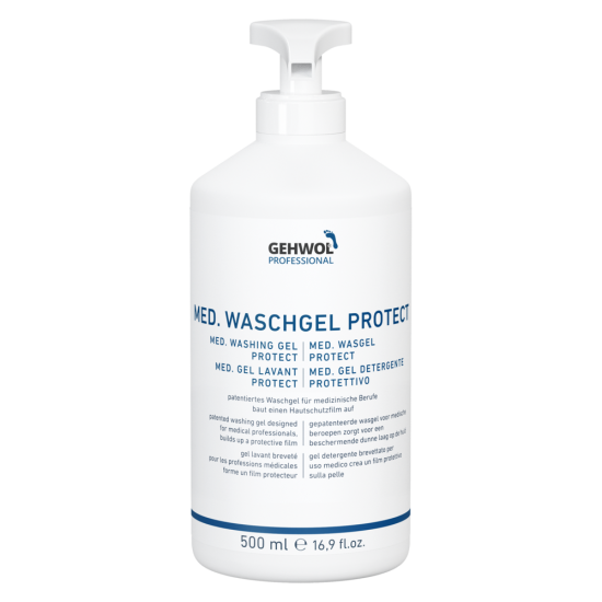 Le GEHWOL PROFESSIONAL Waschgel Protect est un gel lavant breveté, sans savon, conçu pour les professionnels des soins des pieds et du secteur médical. À base de tensioactifs doux à base d'acides aminés, il nettoie efficacement tout en respectant les peaux les plus sensibles.