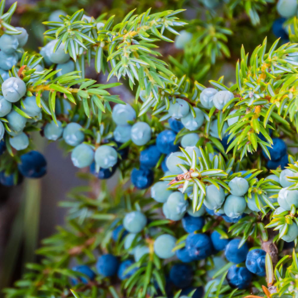 Nom botanique : Juniperus Communis Famille : Cupressacées (Cupressaceae) Odeur : Puissamment verte et herbacée, avec une légère nuance d'aiguilles de pin. (note de tête à moyenne) Couleur : Incolore à jaune clair