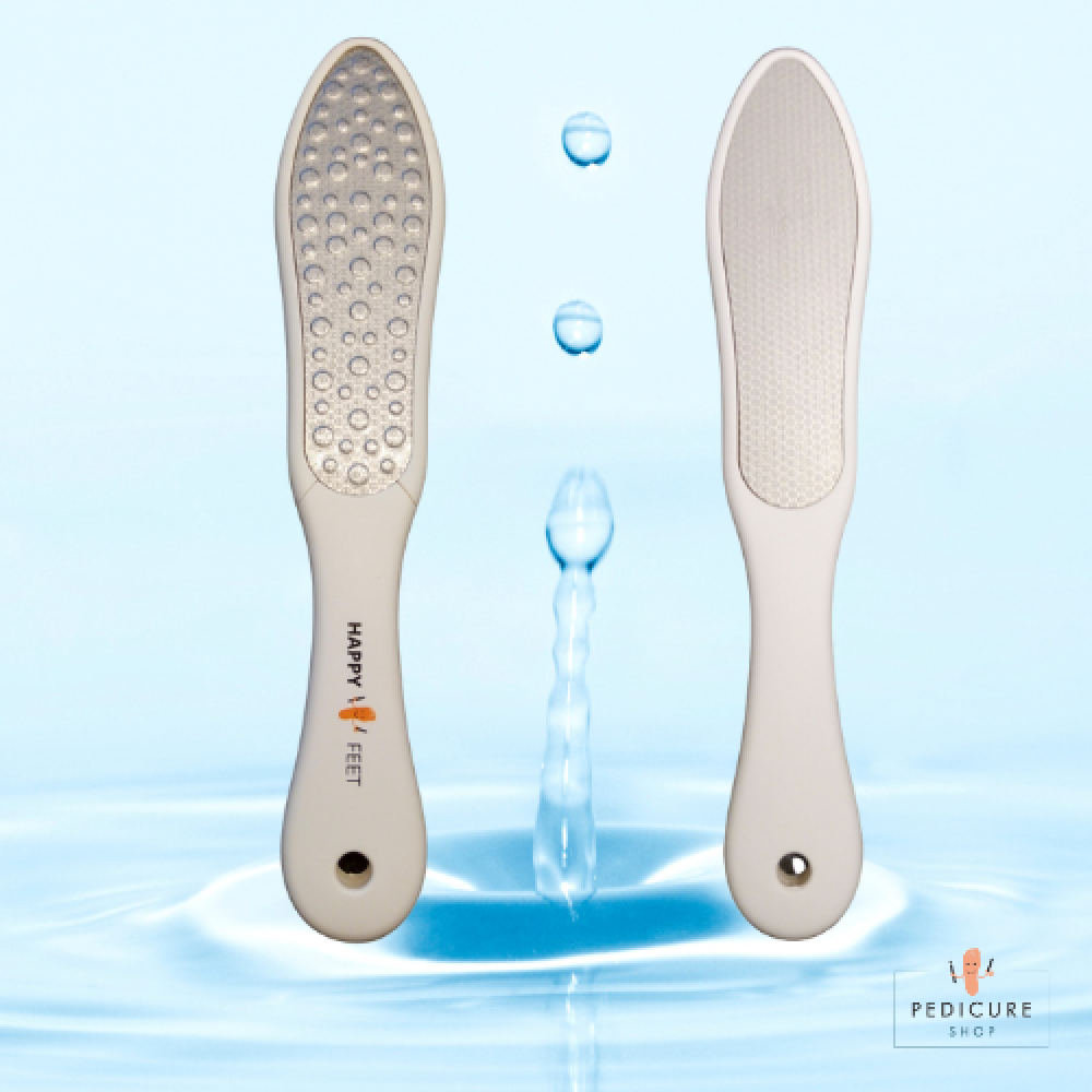 La râpe pieds Happy Feet est l’outil idéal pour éliminer les callosités de manière douce, rapide et sécurisée. Son design double face avec surface rugueuse et fine permet de traiter efficacement les zones rugueuses. Convient parfaitement aux personnes diabétiques ou à risque.