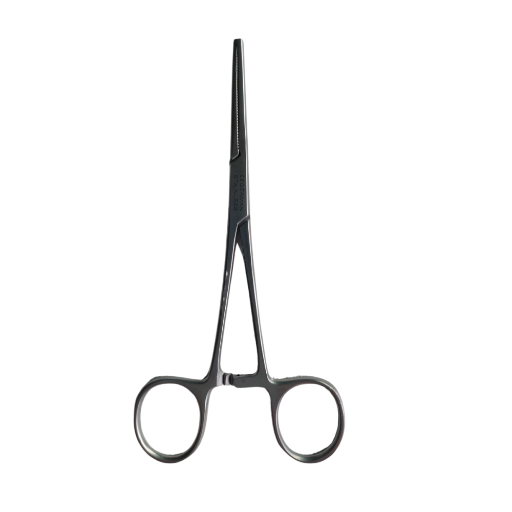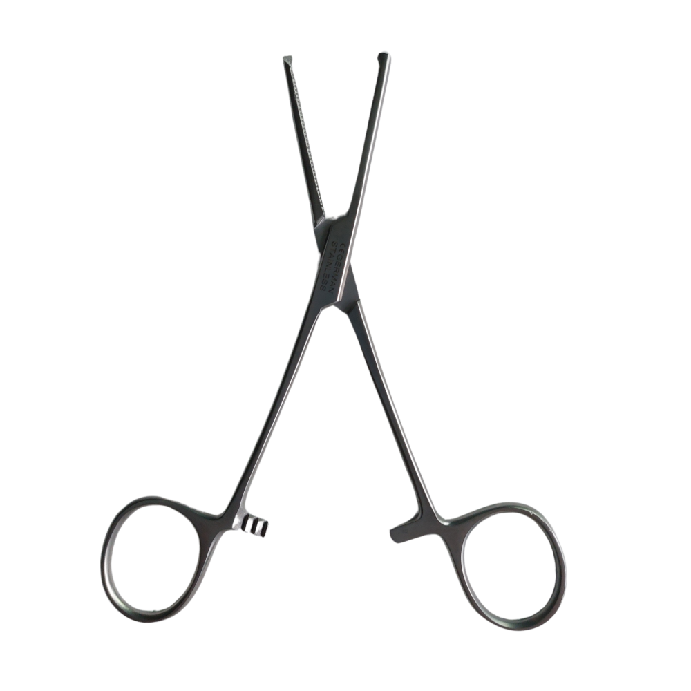 - Mâchoire droite avec dents : La mâchoire droite avec dents rend ce Kocher idéal pour serrer les orthèses, qui sont maintenues fermement entre les mâchoires du Kocher. Cela garantit un placement sûr et stable des orthèses pendant le traitement.