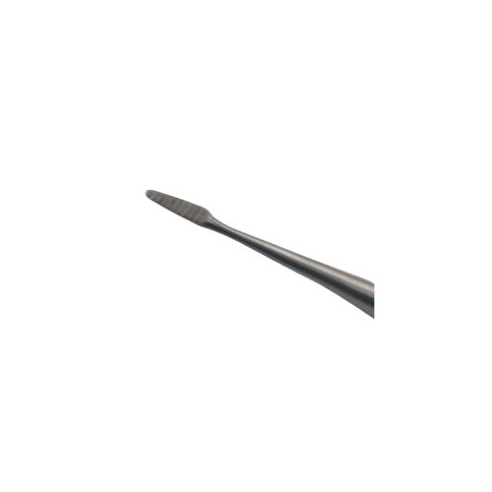 Le manche rond avec stries assure une excellente prise en main, même en conditions humides. Fabriquée en acier inoxydable (INOX), elle est durable et stérilisable, parfaitement adaptée aux usages professionnels.