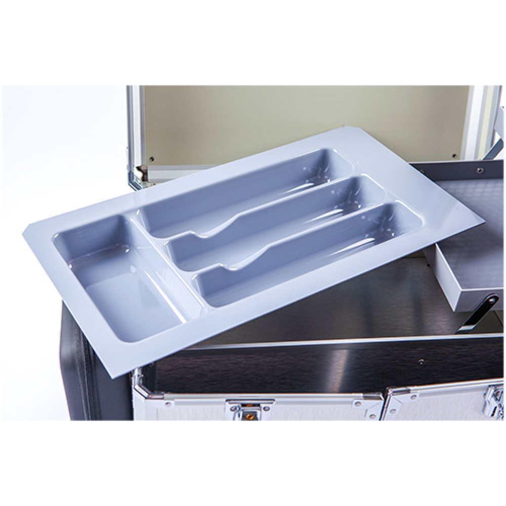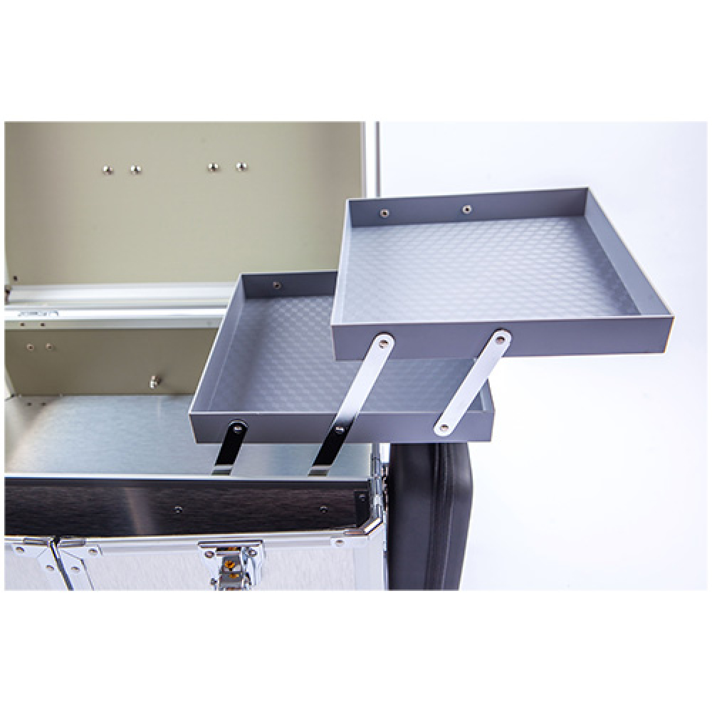 2 plateaux coulissants (22 × 22 × 2,5 cm) pour pansements ou petit matériel