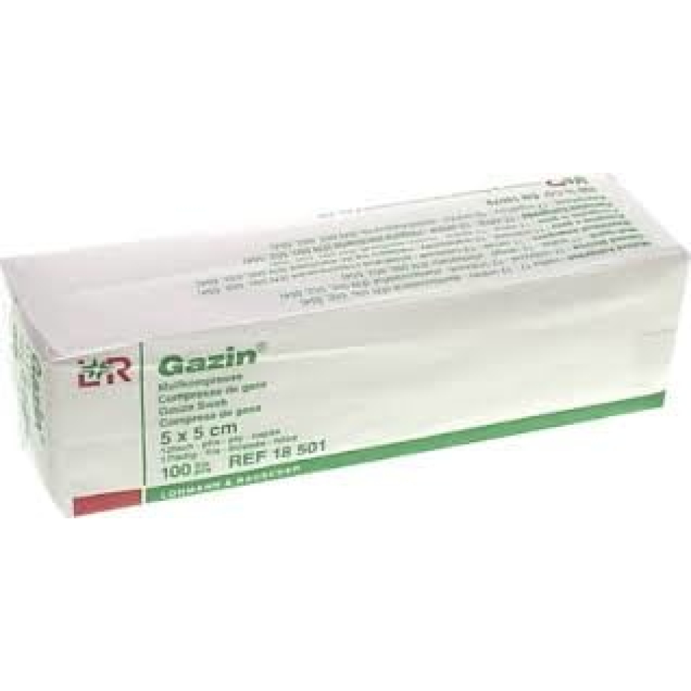 Professionele Gazin gaaskompressen (5 x 5 cm) uit zacht, hydrofiel 100% medisch katoen. De 12-laagse weving geeft een hoge absorptie bij vochtige wonden en bij het grondig reinigen tijdens pedicurebehandelingen. Zelfkanten zijn naar binnen gevouwen voor comfortabel contact met de huid en minder pluis.