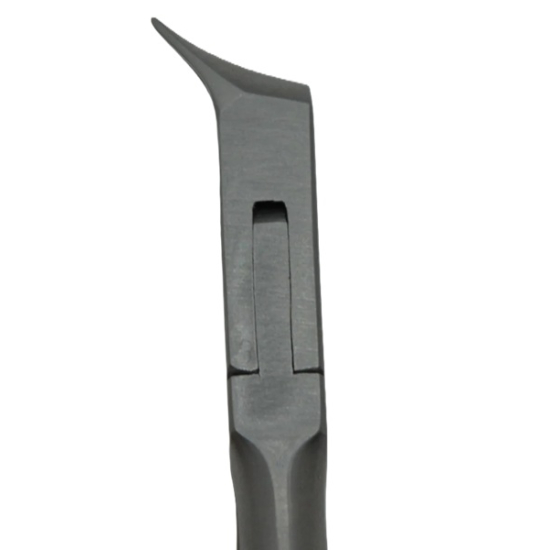 Deze halvemaan kopsnijder of dwarssnittang is ontworpen voor fijn en precies knipwerk, ook op moeilijk bereikbare plaatsen zoals nagelhoeken. Dankzij het lichtjes afgeronde, concave snijvlak van 12 mm en de verfijnde scherpe punt, werk je nauwkeurig en gecontroleerd – zonder schade aan omliggende huid.