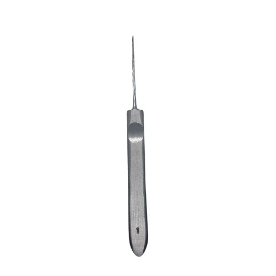 Deze holle beitel of eeltguts is ontworpen voor het nauwkeurig verwijderen van eelt, likdoorns of eeltpitten. Met een beitelbreedte van slechts 1 mm en een lengte van 4,8 cm is dit instrument uiterst geschikt voor precisiewerk in de nagelomgeving of op moeilijk bereikbare plekken.