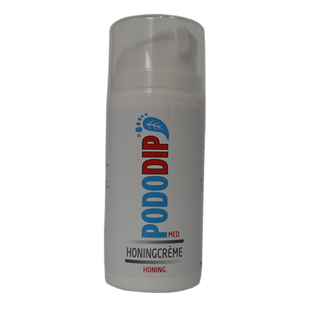 Pododip Voetencrème Honing is een verzorgende, hydraterende crème die speciaal ontwikkeld is voor de droge, ruwe of gevoelige voeten. Dankzij de combinatie van honing, avocado-olie en vochtinbrengende ingrediënten zoals ureum, yoghurt en hyaluronzuur, krijgt de huid een intensieve verzorging en voelt ze zijdezacht aan.