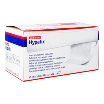 Hypafix 15cm x 10m is een zachte, huidvriendelijke fixatiepleister in non-woven materiaal, ideaal voor gebruik op gewrichten en lichaamsrondingen. Dankzij de transversale rekbaarheid past deze pleister zich perfect aan de bewegingen van het lichaam aan zonder de bloedcirculatie te verstoren. Hypafix is ademend, sterk klevend én pijnloos te verwijderen, zelfs na langdurig gebruik.