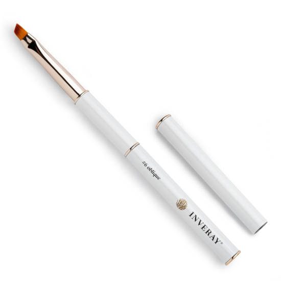 Voor strakke frenchlijnen en detailwerk kies je het Inveray #6 Oblique gelpenseel. De schuine #6-tip geeft maximale controle langs de nagelriem en bij smile lines. De haren hebben een geoptimaliseerde lengte en dikte, zodat gel vlot wordt opgenomen en egaal wordt uitgevlakd—zonder strepen. Het slanke handvat ligt licht en stabiel in de hand; de beschermdop houdt de haren schoon en afgeschermd van licht, ideaal voor hygiënisch salonwerk.