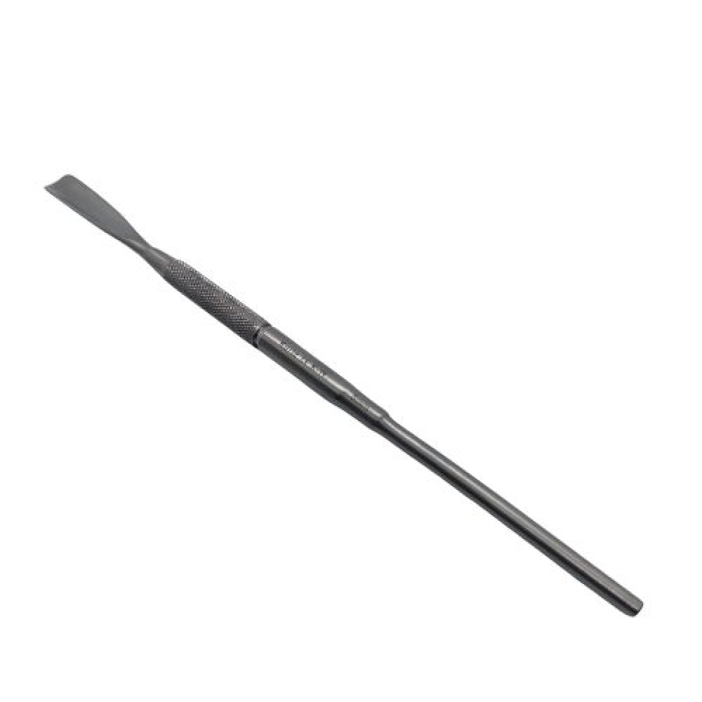 Met een totale lengte van 16,5 cm en een lang, effen handvat met fijne vingergrip ligt het instrument comfortabel en stabiel in de hand. Vervaardigd uit hoogwaardig roestvrij staal (inox), is deze duwer duurzaam, hygiënisch en gemakkelijk te steriliseren.
