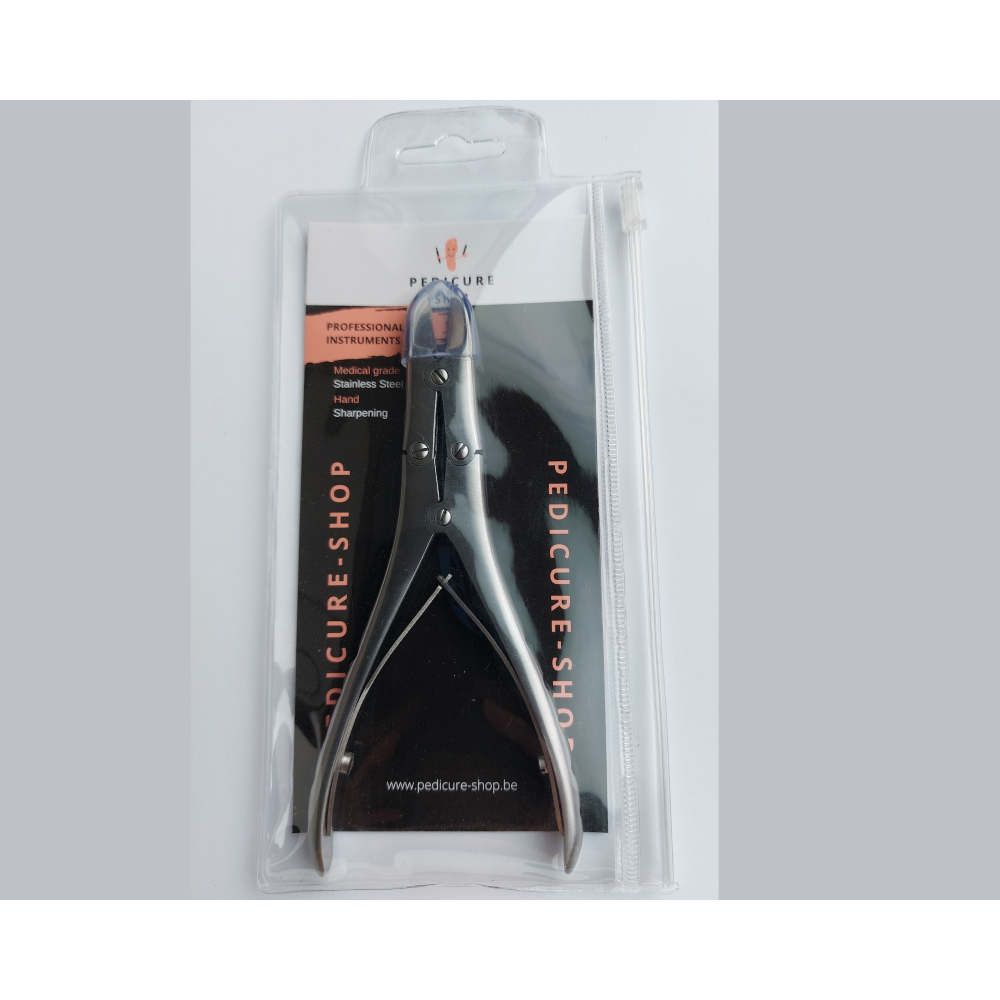 Deze Luxe Dubbele Scharniertang is speciaal ontworpen voor diabetici en risicocliënten waarbij veiligheid voorop staat. De platte bek met licht afgeronde punt maakt het mogelijk om nagels nauwkeurig en veilig te knippen, zonder risico op verwonding van de gevoelige huid.