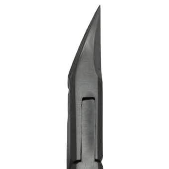 De bek is 2 cm lang, verfijnd en voorzien van een scherpe punt voor het gericht knippen van hoeken en moeilijk bereikbare nagelranden. Het rechte snijvlak garandeert een zuivere snede.