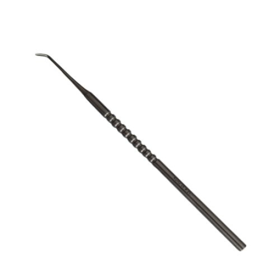 Deze handgemaakte tamponeerhaak van Johann Kurtz is een onmisbaar instrument voor elke professionele pedicure of podoloog. Gemaakt van hoogwaardig roestvrij staal, met een afgeronde haak van 1,6 mm breed voor precisiewerk zonder risico op beschadiging van de huid. De ergonomische ronde handgreep met ribbels zorgt voor een stabiele grip en optimaal comfort tijdens langdurig gebruik. Perfect voor het plaatsen van tamponades of het verwijderen van vuil op moeilijk bereikbare plaatsen.